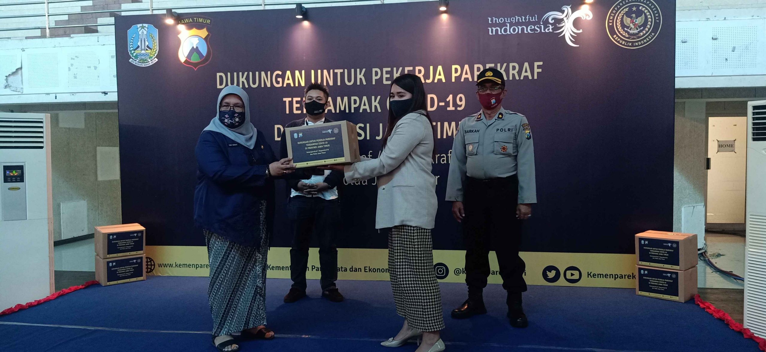 MalangSatu – Bekerjasama dengan jajaran kepolisian di wilayah Kepolisian Daerah (Polda) Jawa Timur, Kementerian Pariwisata dan Ekonomi Kreatif (Kemenparekraf) menyalurkan bantuan tahap kedua untuk pekerja sektor pariwisata dan industri kreatif yang terdampak pandemi covid-19.