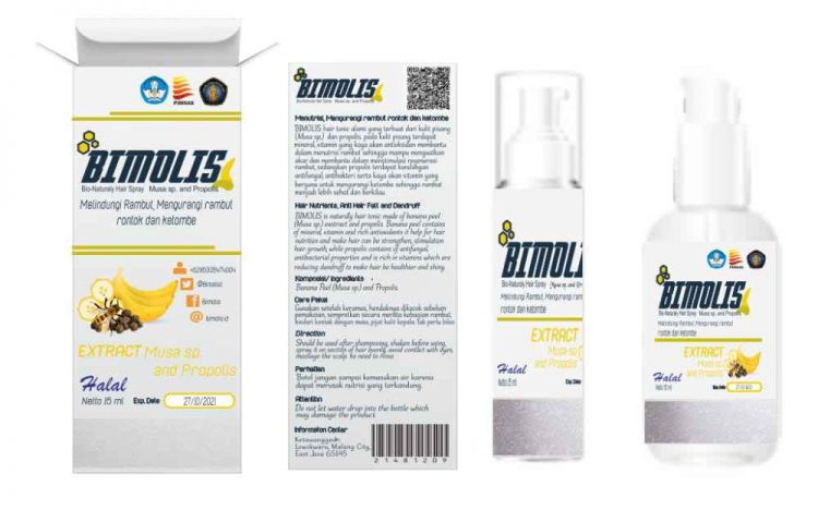 Septa Rahma Hidayat, Lilin Putri Jasmine, Eva Nur Hidayah, Rahma Andita Desi P. dan Moh Mario Alvin Supandhi berhasil membuat tonik mencegah kebotakan dengan nama (merek) BIMOLIS yang dibuat dari bahan alami yakni kulit pisang Kepok dan Propolis.