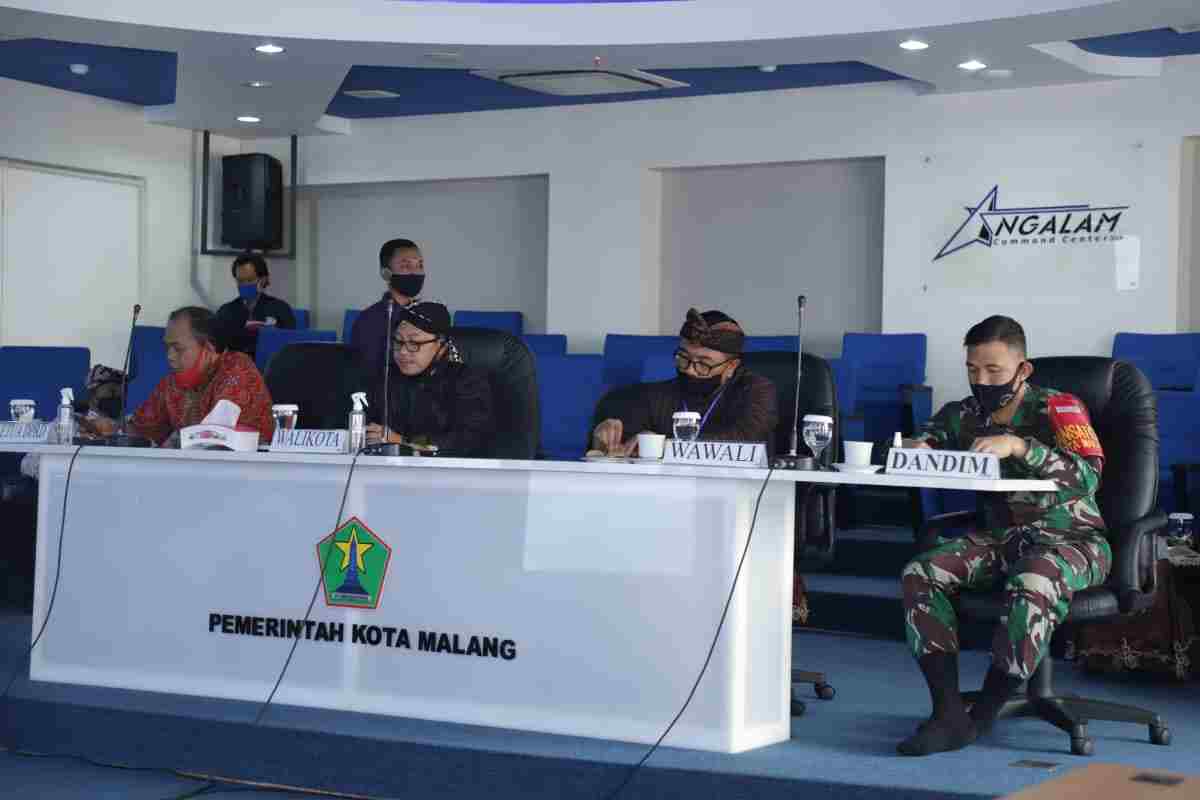 Tampak hadir di Ngalam Command Centre (NCC) mengikuti Video Conference bersama Gubernur Jatim dan Presiden RI ini antara lain Walikota Malang Sutiaji, Ketua DPRD Kota Malang I Made Riandiana Kartika, Dandim 0833 kota Malang Letkol Inf Tommy Anderson, Kapolresta Malang Kota KBP Leonardus Harapantua Simarmata Permata dan Wakil Walikota Malang Sofyan Edi Jarwoko. (Red)