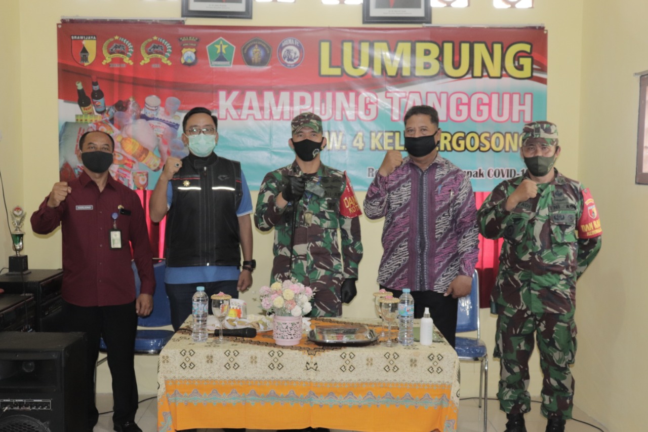 Sebagai dukungan atas inisiatif dan semangat masyarakat menciptakan kemandirian dalam menghadapi pandemi covid-19, Dandim 0833 kota Malang memberikan bantuan berupa paket sembako kepada pengurus Kampung Tangguh RW 4 Mergosono.