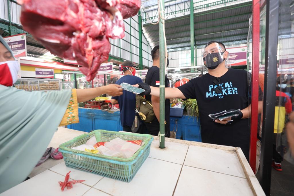 Gubernur Jawa Timur yang ditemani oleh Forkopimda Jatim dan Kota Malang ini membagikan masker kepada masyarakat di beberapa titik seperti sekitar Pasar Oro-Oro Dowo, Stasiun Koya Baru dan Pasar Klojen.