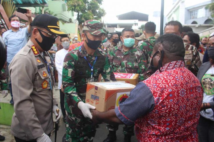 MalangSatu – Mendampingi Komandan Korem 083 Baladhika Jaya, Kolonel Inf Zainuddin, Komandan Kodim 0833 Kota Malang Letkol Inf Tommy Anderson menyalurkan bantuan kemanusiaan berupa bahan pangan kepada mahasiswa Papua di asrama Manokwari Kota Malang hari ini, Jum’at (01/05/2020).